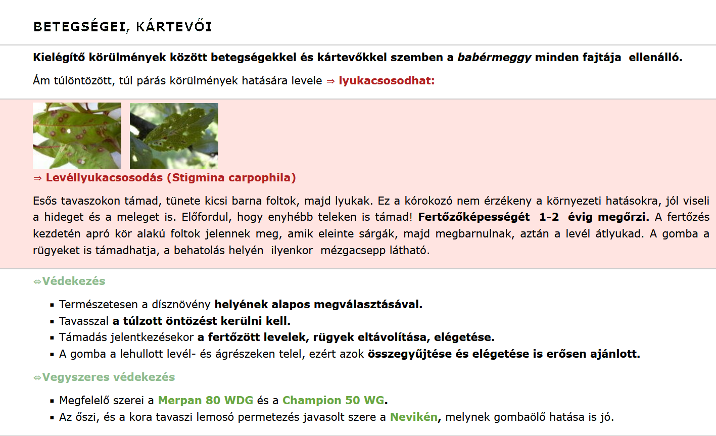Itt, a Díszfa Díszcserje Webáruházban, minden dísznövényünk ismertetésének oldalán bemutatjuk egy-egy adott dísznövény Betegségeit, Kártevőit. Ennek során hangsúlyozzuk a lemosó permetezés fontosságát, néhány permetezőszer ajánlásával. Példaként tekintse meg a babérmeggy ez irányú leírását: Babérmeggy betegségei, kártevői.